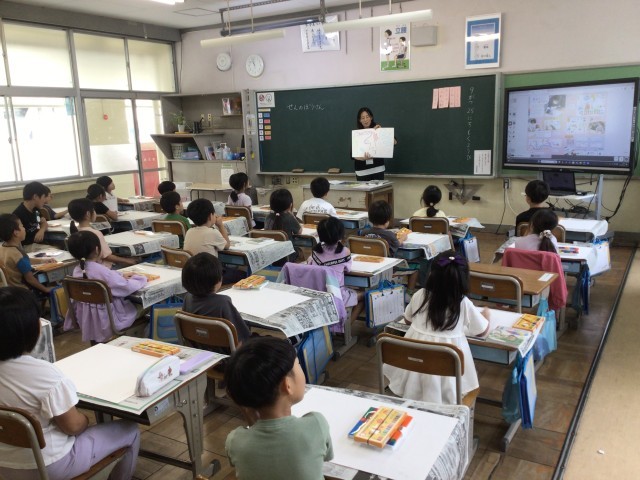 振り返りでは、記号で自分の活動を振り返りながら、「難しかった」「また続きをかきたい」などの発言もありました。