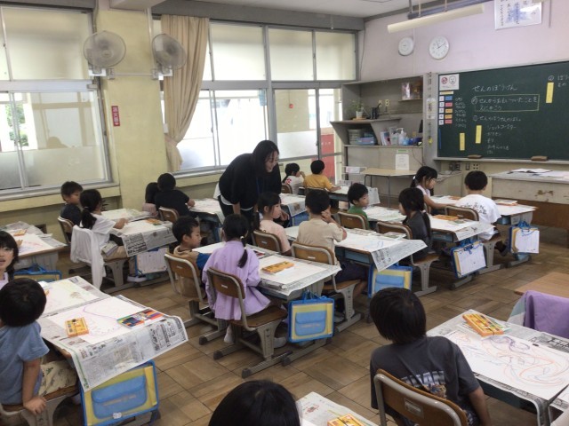 今日の授業では、かいた線から冒険の構想を練り、クラスメイトと話し合い、絵に表していました。