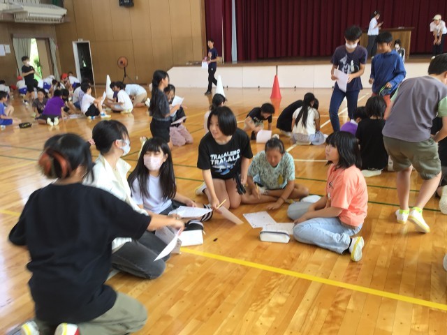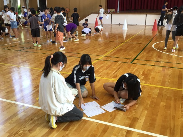 総務委員会の企画、ミッショインポッシブル!!普段は、ペア活動をすることが多いですが、今回は今まであまり関わらない5・6年、3・4年、1・2年で、総務委員が出すミッションをクリアしていくイベントです。「苦手な食べ物が一緒の人を探す!」「学校の好きなところが一緒の人を探す!」など、ユニークなお題が沢山で、みんな笑顔で活動することができました♪
