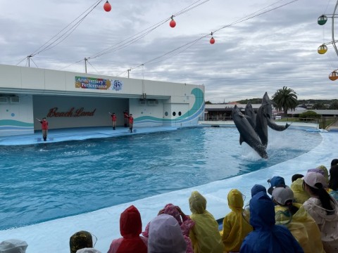 みんなでイルカショーを観たり、おいしいお弁当を食べたり、