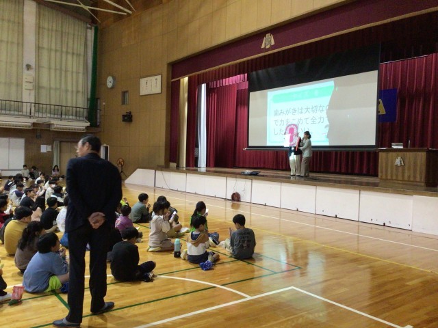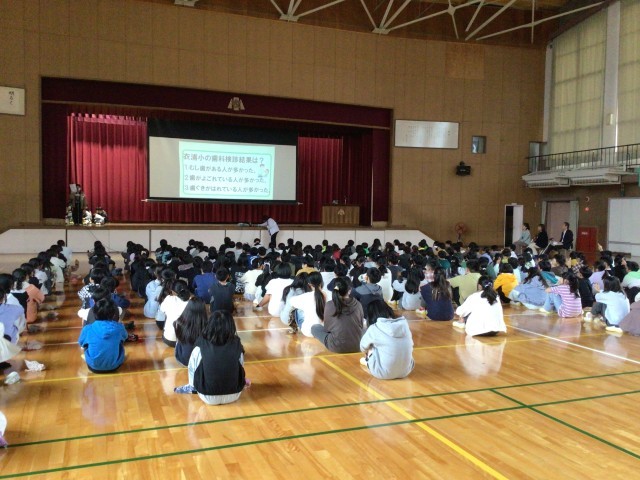 「歯みがき名人になろう」というテーマで、保健センターの歯科衛生士さんや学校歯科医の先生から歯みがきや虫歯の秘密について教えていただきました。
