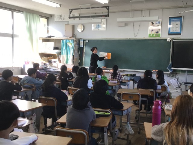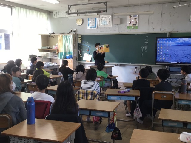 朝の時間におへその会の方が来てくださり、4年生に読み聞かせをしてくださいました。