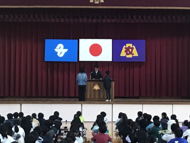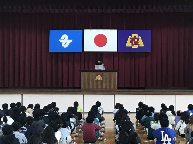 夏休みの作品募集をがんばった子や6年生の意見発表会で受賞した子など、衣っ子の輝きがあふれた集いとなりました。
