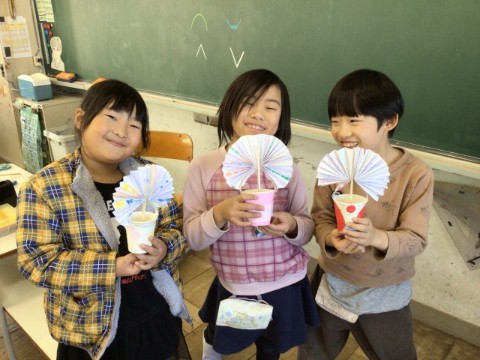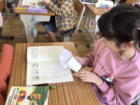 2年生は国語科『紙コップ花火の作り方』を読みながら、実際に紙コップ花火を作りました。来週からは教科書を参考にして、生活科で製作したおもちゃについて、作り方をまとめていきます。
