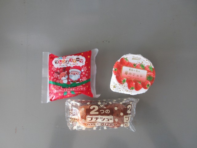 セレクトデザートは、2つのプチシュー、カップケーキ、いちごゼリーの3つの中から、事前に選んだ1つでした。