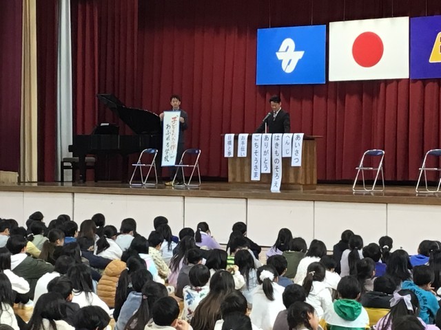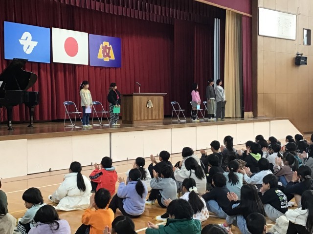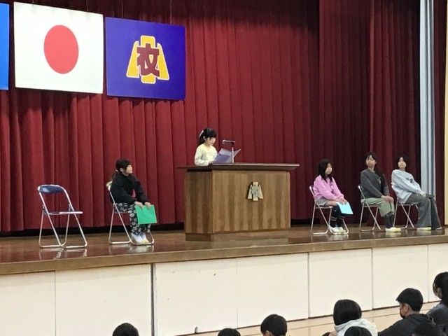 スピーチでは、各学年の代表が2学期に頑張ったことを発表しました。