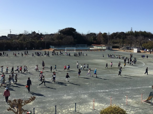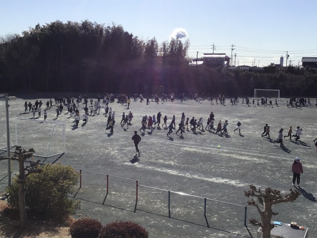 運動場に出てすぐは「寒い〜」と叫んでいましたが、走り出すとどんどん上着を脱いでいました。