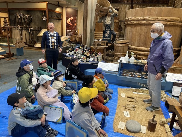 子どもたちは教科書の資料を見て、100年くらい前の時代はどんな道具を使っていたのか?この道具はどうやって使うのか?そんな疑問をもちながら、武豊町歴史民俗資料館を訪れました。