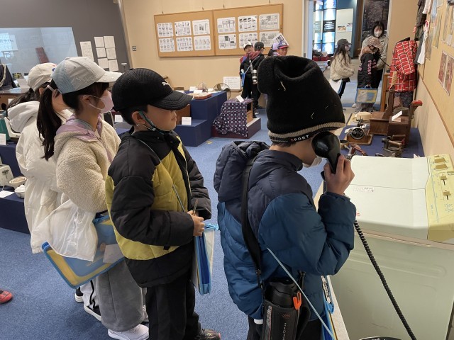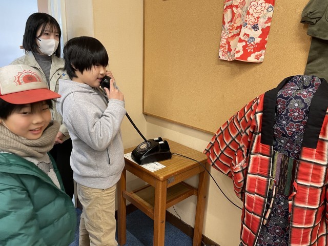 資料館では展示物に興味をひかれるだけではなく、体験も盛りだくさんであっという間に時間が過ぎました。稲わらで縄を作ったり、黒電話で実際に会話したり、機織り機で布を織ったり、子どもたちの好奇心が高まることばかりでした。
