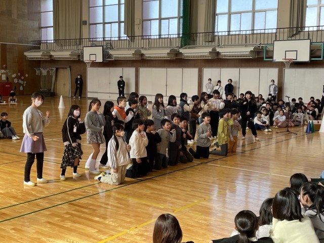 6年生からの出し物は、1~5年生へのメッセージと共に、最後に思い出に「ズートピア」を全校で踊りました。
