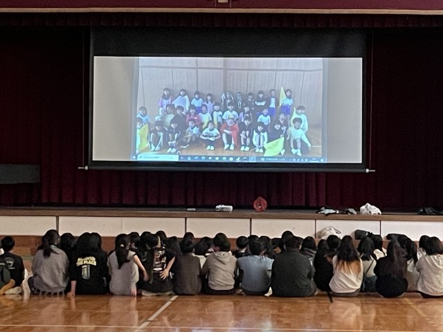 次に、6年生の思い出ムービーをみんなで見ました。大笑いしながら、これまでの学校生活を振り返っていました。