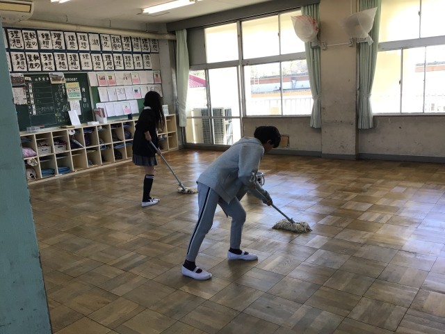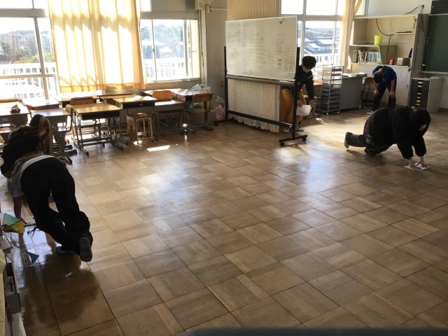 5・6時間目に、愛校作業を行いました。6年間過ごした学校への感謝の気持ちを込めて、普段の清掃ではできないような場所までていねいに掃除をしました。友達と助け合って重いものを運ぶ姿や一人で黙々と掃除をする姿に、清々しさを感じました。
