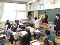 3年生が地域のお年寄りを講師に招いて、昔のことを教えてもらう会を開きました。社会科で昔の生活について学ぶ単元に関連して行われました。