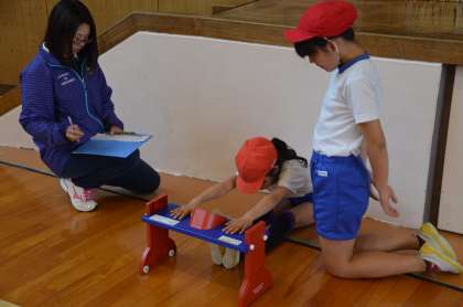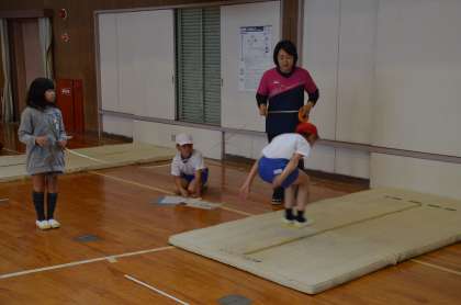 体育館に集まった5・6年生が自己ベストを目指してチャレンジしていました。
