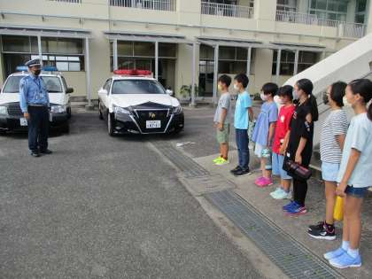 総務委員の児童が,パトカーとパトロールカーに乗って,交通安全の呼びかけを行いました。初めて乗るパトカーに緊張していましたが,ゆっくり,ハキハキと話すことを心がけて呼びかけることができました。これからも交通安全に気をつけて生活していきましょう!