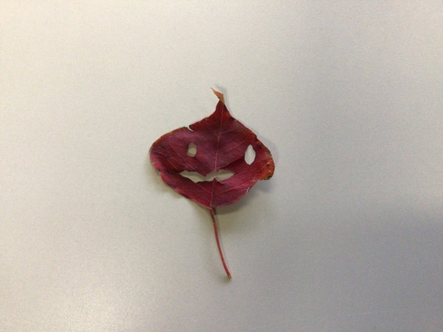 子どもたちも思い思いに秋を楽しんでいて、葉っぱでかわいい顔を作ってくれました。