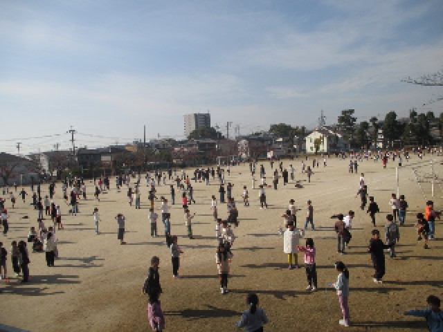 昨日、今日と天気がよく、運動場はなわとびを持った子どもたちでいっぱいでした。