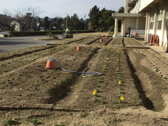 南館前の花壇には、先日PTAの方々に春花壇の苗の定植を行っていただきました。春にはきれいな花を咲かせて、卒業や入学をお祝いできることを楽しみにしています。