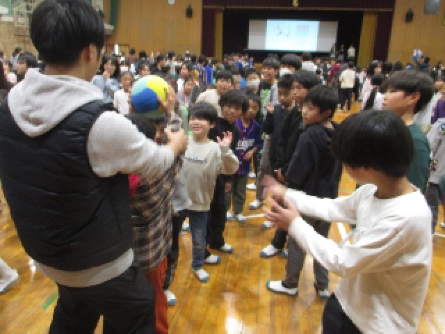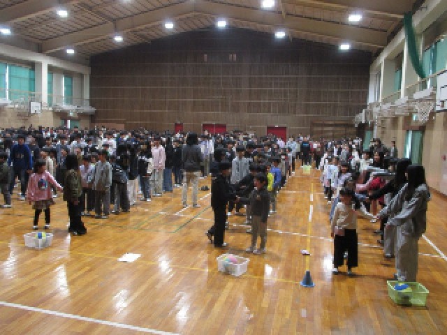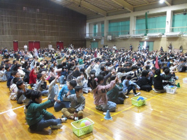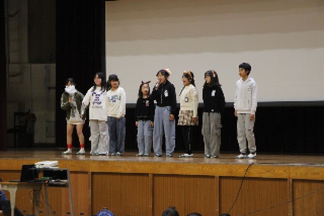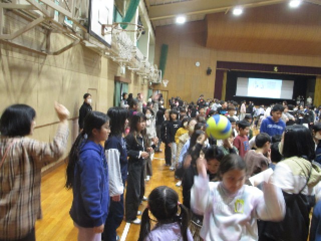 児童集会を行いました。総務委員が会の進行をしました。「クイズ」、「ばくだんゲーム」、「聞いてまねしてロボットゲーム」を行いました。ペア学年でいっしょに活動をしました。活動をしているときの上の学年の子が下の学年の子に向ける優しい表情が印象的でした。