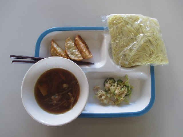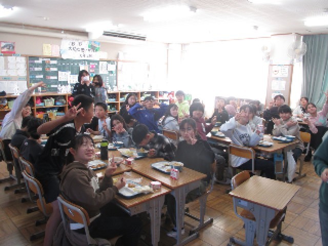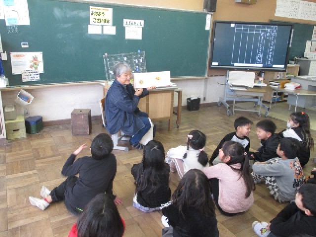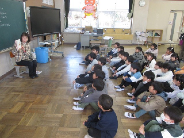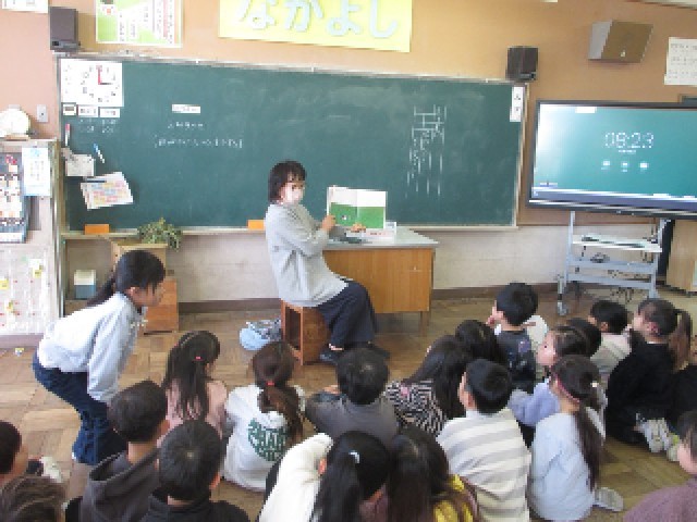 今日は、おへその会の方が1年生に読み聞かせをしてくれました。今週は卒業お祝い給食週間です。今日は「ちゅうかめん、あげぎょうざ、バンバンジーサラダでした。
