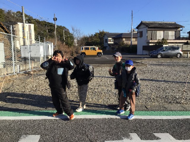 今日は学校の東から登校してくる子どもたちの様子を見に行きました。一人で歩く子、お家の方と歩く子、友達を待っていて合流する子などさまざまでしたが、みんな緑色のラインの上を上手に歩いていました。一緒に歩いて登校に寄り添ってくださる保護者の皆様、寒い中ありがとうございます。