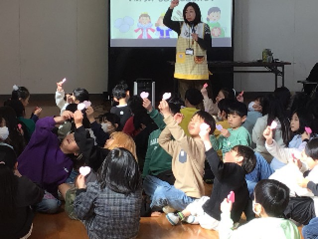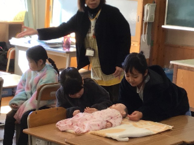 武豊町の保健センターの保健師さんに来ていただいて、2年生がいのち学習をしました。いのちのもとになる小さな卵のこと、いのちの誕生は奇跡であることを教えていただきました。その後、赤ちゃん人形を抱っこしたり、聴診器で体の声(心音)を聞いたりする体験を行いました。一人一人のいのちがかけがえのない大切なものであることを学ぶことができました。