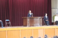 新しく赴任した教職員を玄関で出迎えました。