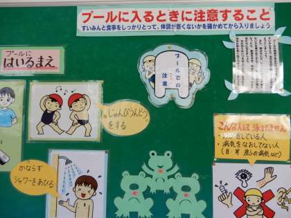 内容が季節ごとに変わります。水泳が始まりましたので、プールのことになっていました。