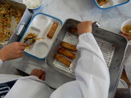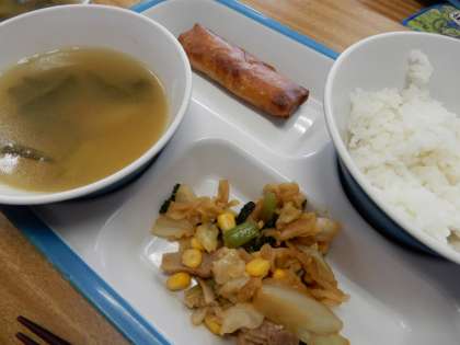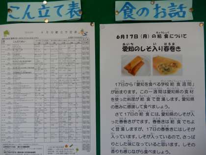 今週は愛知を食べよう週間です。今日は、しそ入りの春巻きが出ました。しその風味が感じられ、美味しくいただきました。