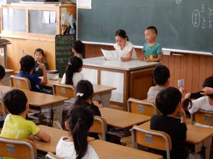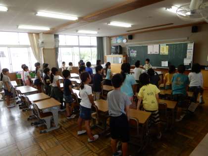 全校合唱に向けて元気よく歌を歌います。健康観察を行い教室の温度等環境を確認します。そして、保健係さんが職員室前の掲示板に出席状況を記入します。2年生はとてもしっかりできます。