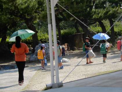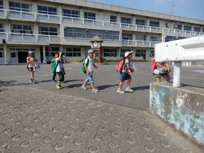 1,2年生は5時間授業でした。学級で確認をして、方面別にまとまって帰ります。