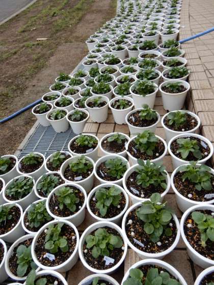 植え替えが終わりました。春には美しい花で、卒業式が行われる体育館を飾ってくれます。それまで、一人一鉢、子どもが気持ちを込めてお世話します。