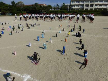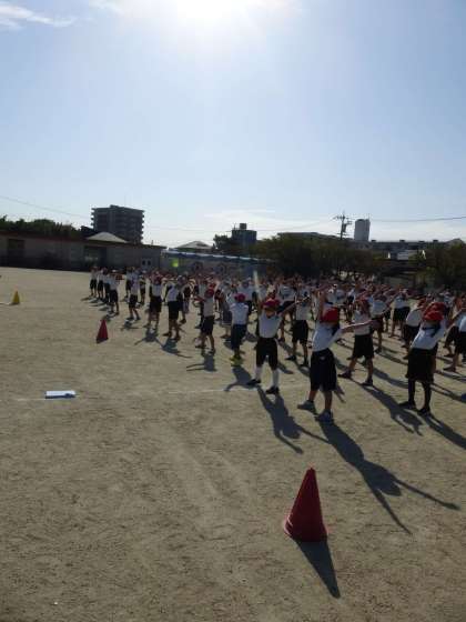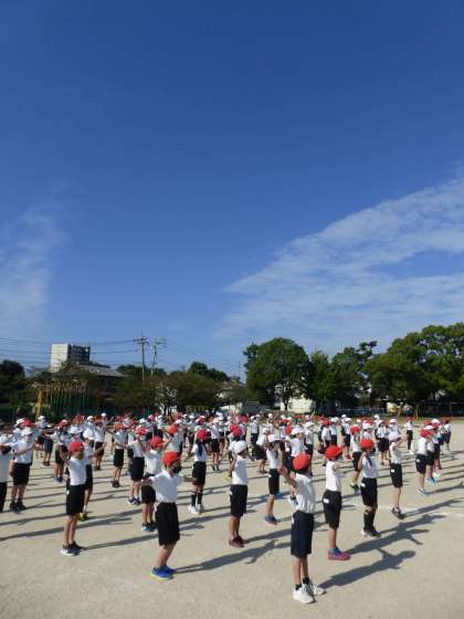 秋晴れの気持ちよい朝です。1時間目は4年生の学年練習です。