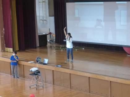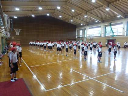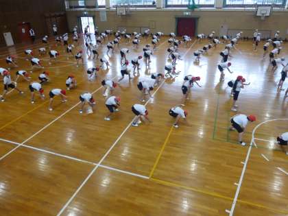 5時間目に学年練習の時間がありました。体育館で行っています。