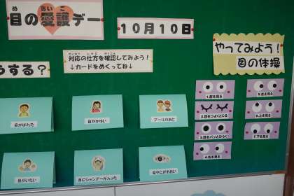 今月は目について保健室掲示板にありました。ゲームやテレビの見過ぎ・・・視力が悪くならないようにしましょうね!