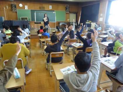 日本各地の民謡を聞き比べて、節など特徴を考える授業をしていました。