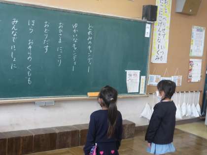 歌の発表していました。感染予防を意識して、黒板に向かって歌っています。聞く姿もよかったです。