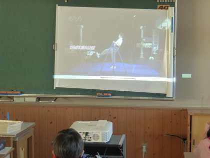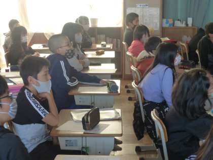 この学級は、プロジェクター+iPadです。新しいプロジェクターは電源オンですぐに使えます。また、Apple TV が常時接続されているので、離れたところから操作できます。どこでも簡単に投影できるので使いやすいです。