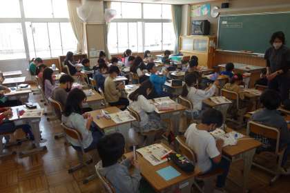 角の大きさの学習に入りました。学習を進めていく上で角の概念をつかみやすくするために色紙を折っていました。がんばって取り組んでいますね。