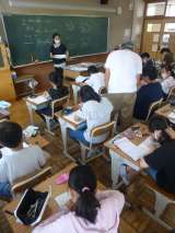 2階の4年生の教室です。理科の授業をしています。 教室にエアコンが設置されてとて...