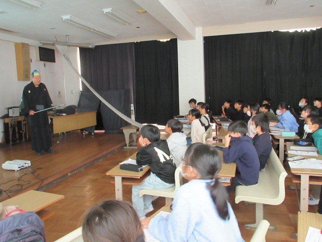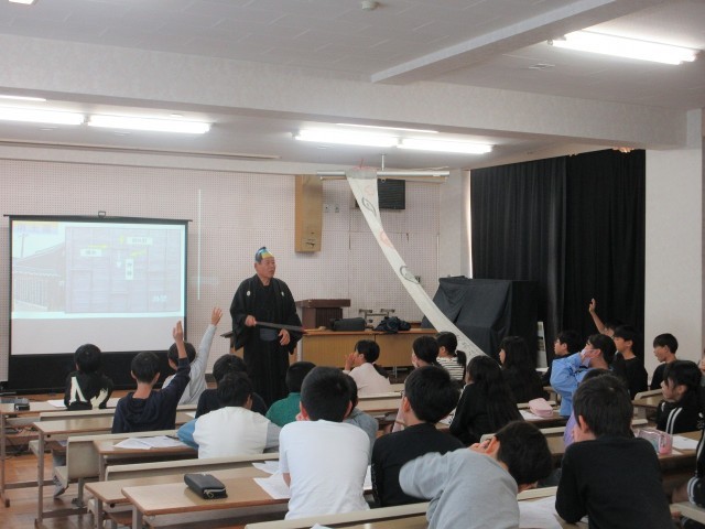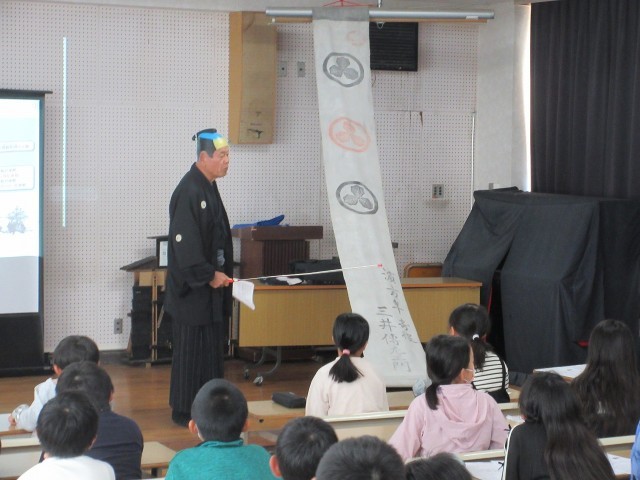 2時間目に出前授業がありました。「三井家住宅を護る会」の皆様にご来校いただきました。