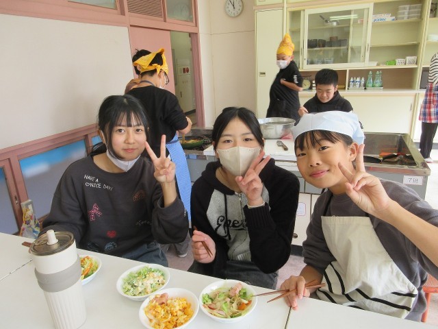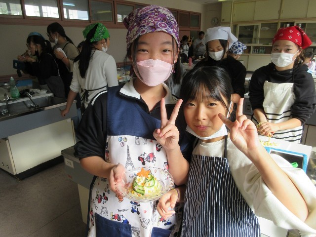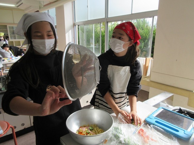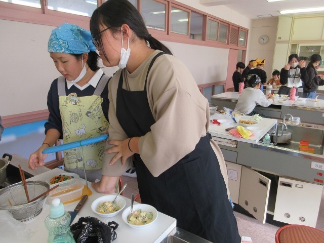 ふきっ子6年生の授業の様子です。家庭科「まかせてね 今日の食事」の学習で調理実習を行いました。栄養バランスを考えた副菜を作りました。