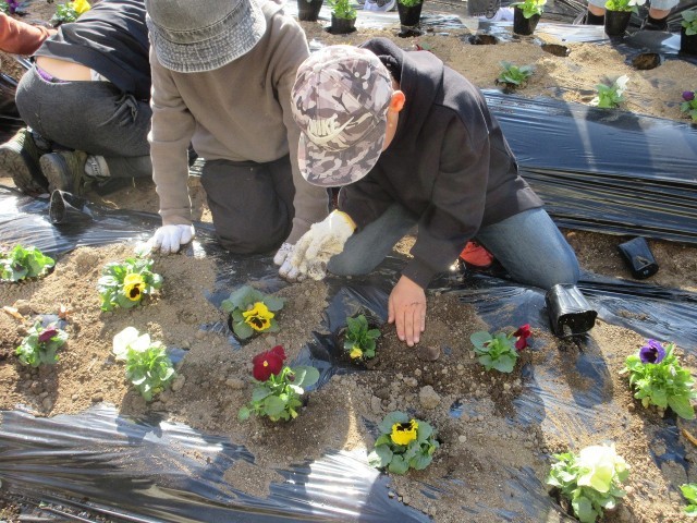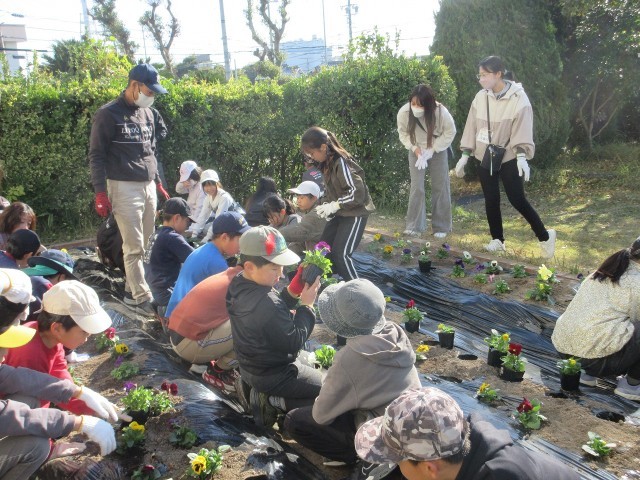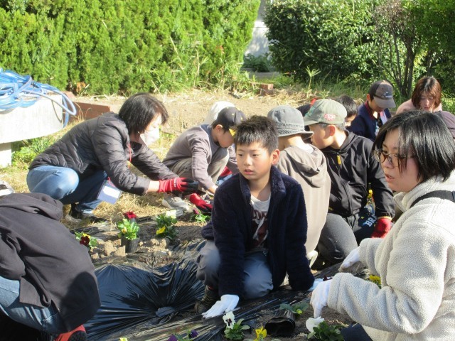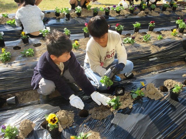 子どもたちは、「楽しい!」と言いながら花の定植作業を行っていました。日時計花壇があっという間に花いっぱいになりました。卒業式も楽しみです。