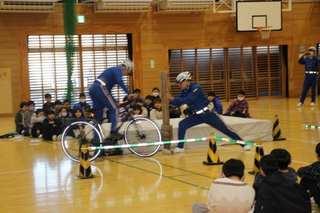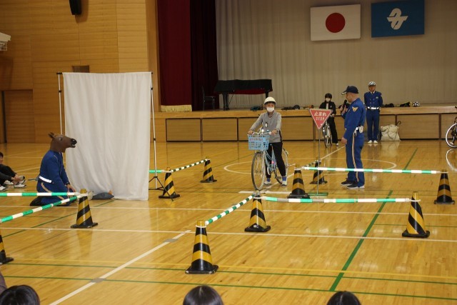 愛知県警「B-Force」の方々による自転車教室がありました。4年生と6年生が参加しました。ヘルメットの正しいかぶり方や、ヘルメットの重要性について改めて教えていただきました。また、交差点の安全な渡り方についても、代表児童の渡り方を例にたくさん教えていただきました。