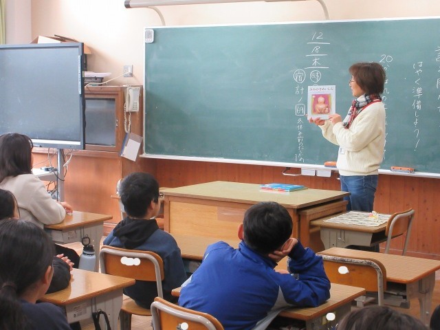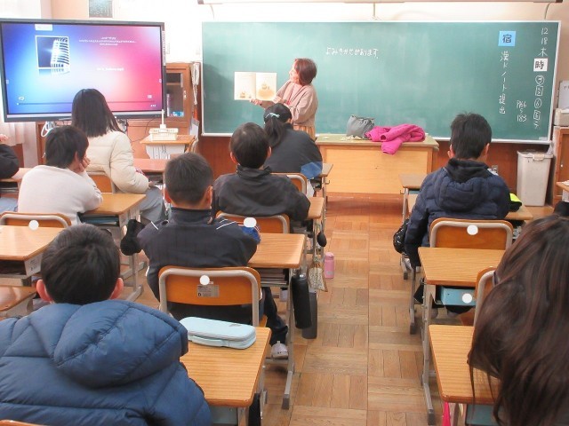 今日のふきっ子5年生の朝の読書タイムの様子です。今朝は、おひさまの会による読み聞かせがありました。おひさまの会の方が「次の本はこれ。知っている?」と言って出された絵本は『ぐりとぐら』。「知ってる!」「なつかしい~」という言葉が飛び交いました。読み聞かせが始まるとしんとなり、お話を聴き入っていました。