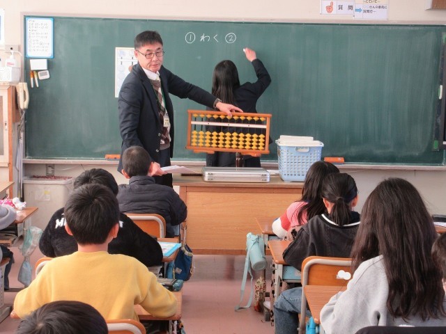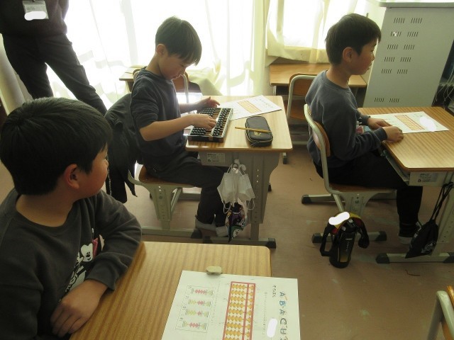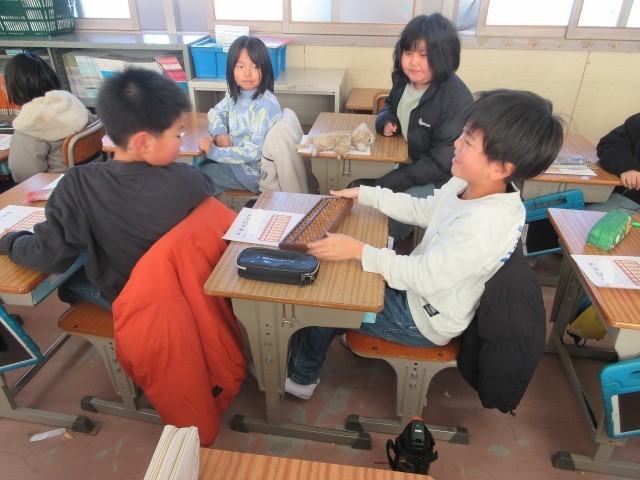 今日のふきっ子3年生の授業の様子です。算数では、そろばんの学習が始まりました。校区にある珠算塾の先生を講師にお招きして授業を行いました。初めてそろばんを使って計算した子もおり、とても楽しそうでした。また来週も来てくださいます。