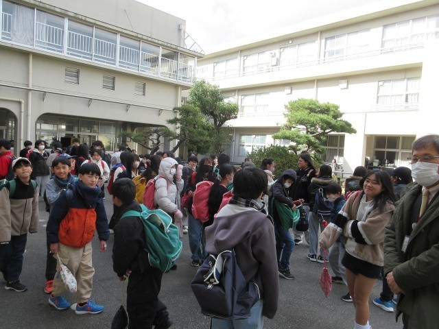 午後から中学校の入学説明会があり、6年生は給食を食べた後、中学校へ向かいました。
