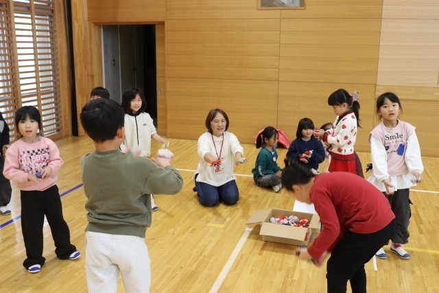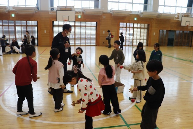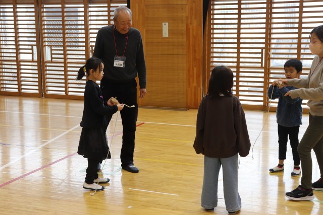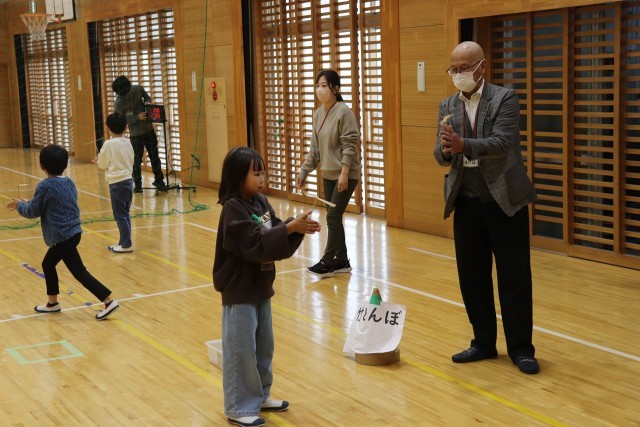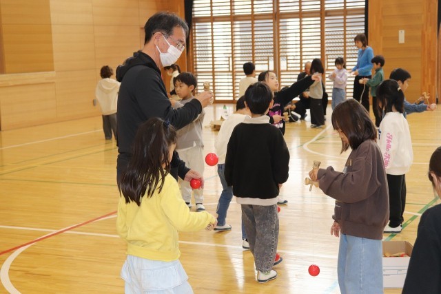 ふきっ子1年生は、冨貴の地域の方を講師にお招きし、「昔の遊び」を体験しました。竹とんぼ、羽子板、お手玉、けん玉、こまの5つの遊びを体験しました。子どもたちは、地域の方々に教わり、それぞれの遊びができるようになると、とっても嬉しそうな表情で繰り返し楽しんでいました。