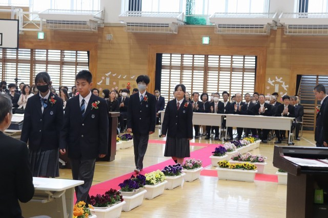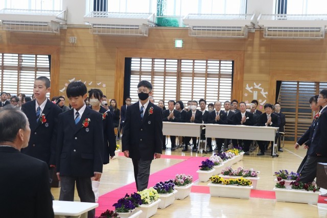 朝は小雨が降っていましたが、式の最中、卒業生の歌声とともに、明るい日差しが体育館に差し込み、卒業生を輝かせる素敵な卒業式でした。