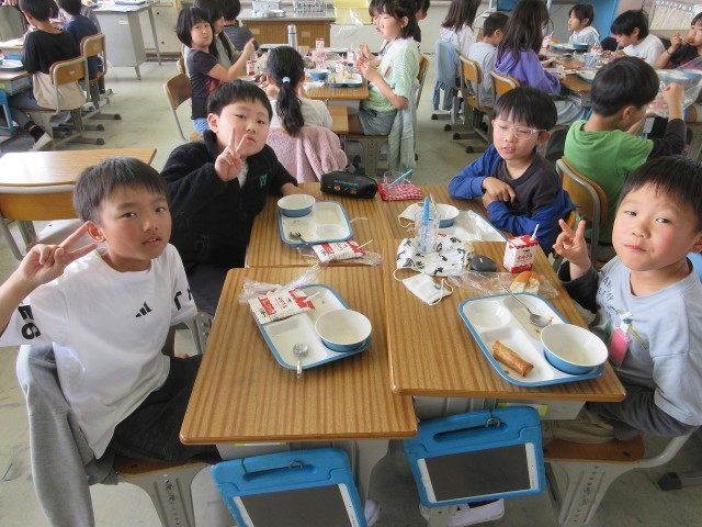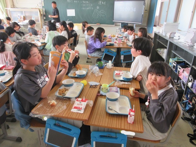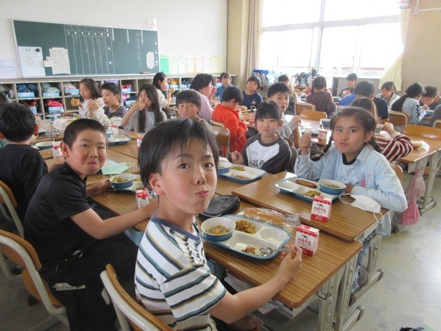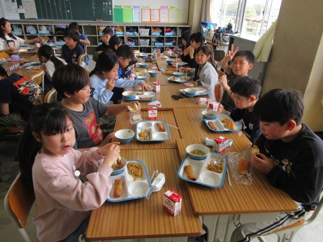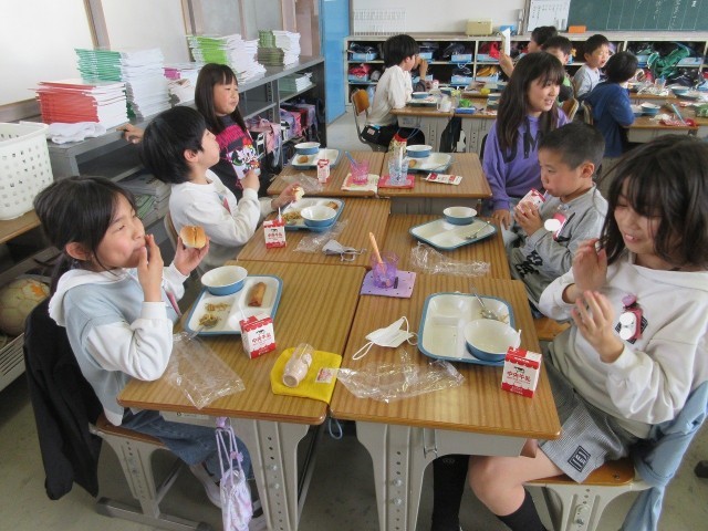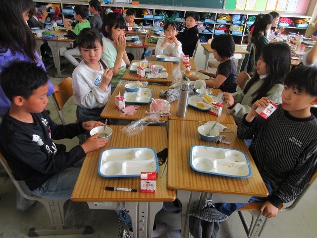 今日のふきっ子4年生の給食時間の様子です。友達と会話をしながら楽しそうに食べていました。食べられる量がかなり増え、あっという間に完食の子がいっぱいでした。